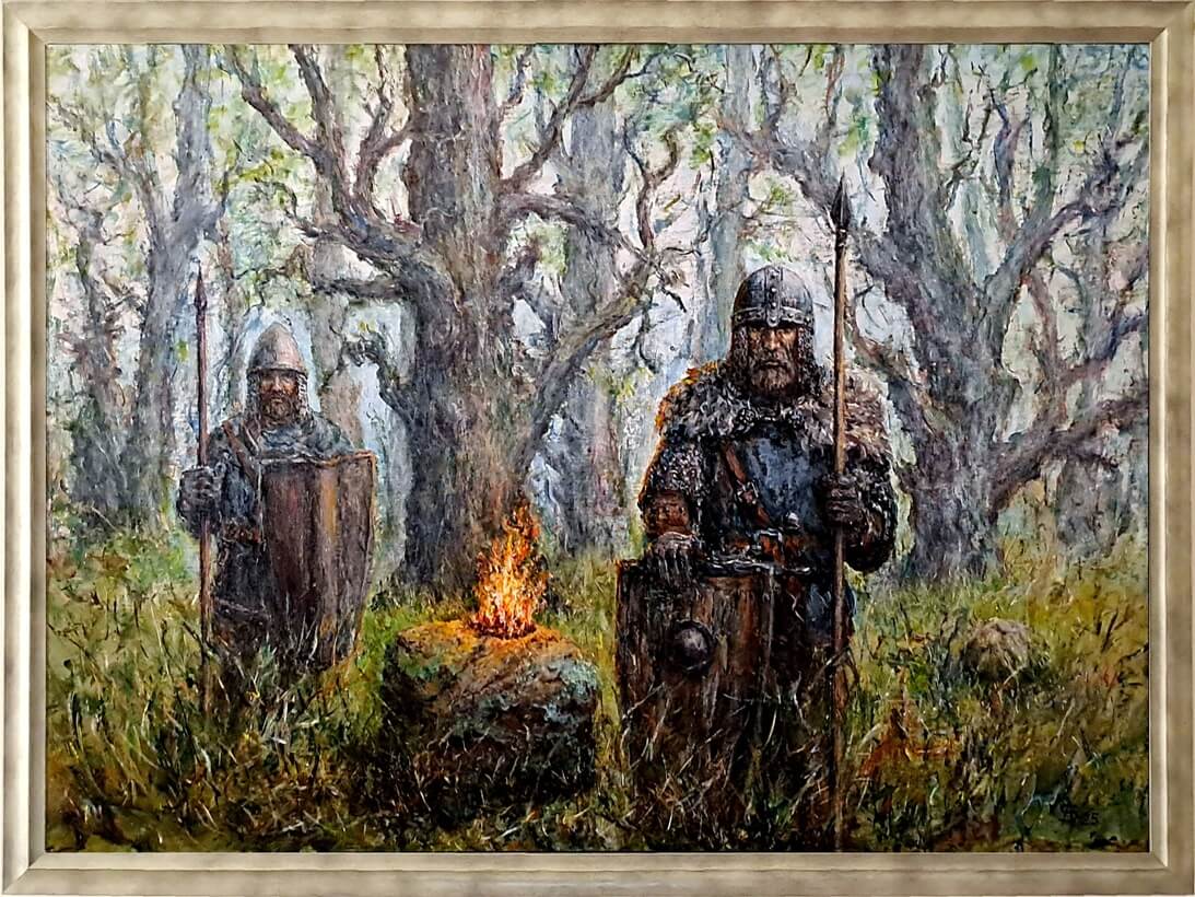 Peržiūrėti visus paveikslusDailininkas Artūras Slapšys gimė 1962ųjų birželio 17 dieną Kaune. 1996 metais išvyko gyventi į JAV, kur pragyveno iki 2011metų pabaigos. Savo profesonalią kūrybinę veiklą Artūras Slapšys pradėjo gyvendamas JAV. Nuo 2010 m., iki 2011 m. pabaigos lankė dailės kursus pas meno dėstytoją ir meno konsultantą Fotio Zemenides iš Čikagos, JAV. Artūro kūryboje dominuoja simbolizmas, istorinių asmenybių portretai, fantastika. Jo paveikslų yra įsigiję privatūs kolekcionieriai iš JAV, Ukrainos, Anglijos, Lietuvos, taip pat jo darbai puikuojasi Islandijos muziejuje „ The Exploration Museum“. 2011 m. paveikslas-triptikas “Please Let Me Live”buvo eksponuojamas Holokausto muziejuje Skokie mieste, Ilinojaus valstija, JAV, ir tais pačiais metais buvo padovanotas Skokie miesto viešajai bibliotekai. 2012 m. paveikslas “Satyr” papuošė Kauno velnių muziejaus ekspoziciją. Dailininkas yra surengęs daug personalinių parodų bei dalyvavęs grupinėse parodose tiek Lietuvoje, tiek JAV. Nuo 2008 metų Artūras Slapšys aktyviai dalyvauja Lietuvos pašto ženklų kūrimo konkursuose ir yra laimejęs keturias prizines vietas, trys ženklai išleisti į apyvartą. Dailininkas yra istorinės knygos “Viduramžių Lietuvos Viešpačiai” vaizdinės medžiagos autorius. Autoriaus kūryba ne kartą pristatyta lietuviškoje ir užsienio spaudoje. Nuo 2012 m. Lietuvos tautodailininkų sąjungos narys. 2014 m. A. Slapšiui suteiktas Lietuvos meno kūrėjo vardas. Vaizdo reportažas apie dailininko kūrybinį kelią. Straipsnis apie istorinius dailininko paveikslus (Žurnalas "Karys", 2019 Nr. 2)