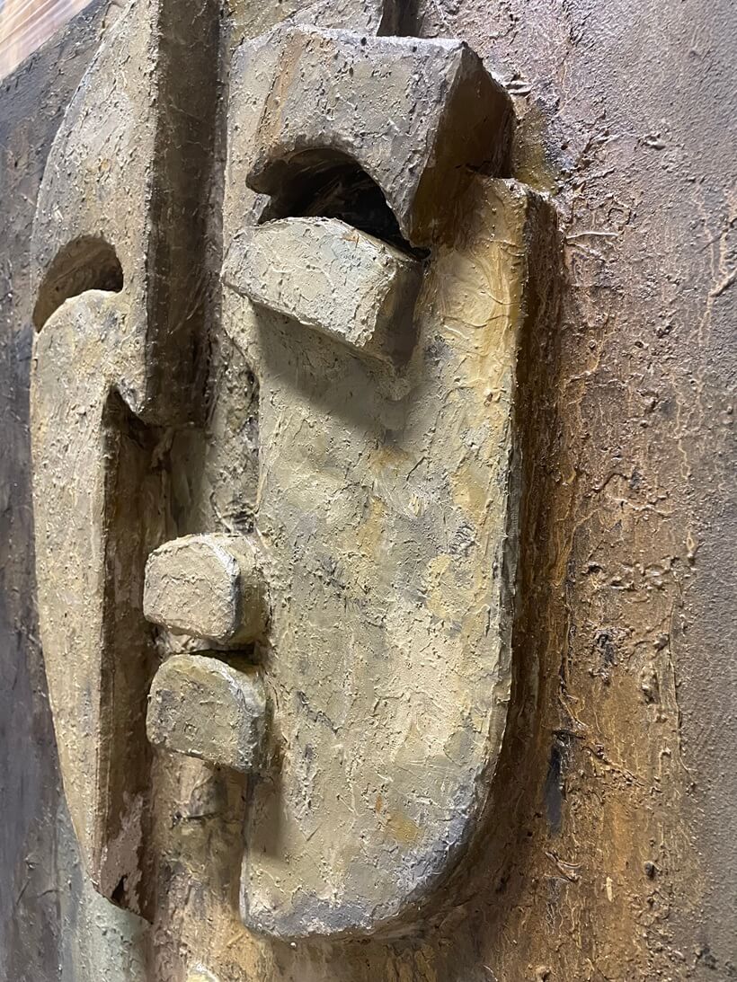 3D meno kūrinys, sukurtas naudojant drobę, putplastį, gipso ir PVA klijų pastą, akrilinius bei aliejinius dažus. Po išdžiūvimo paviršius padengtas aliejiniais dažais, todėl kūrinys primena senovinį akmeninį bareljefą – tarsi atrastą užmirštoje šventykloje. Abstrakti, tačiau atpažįstama moters figūra įkūnija amžiną grožį – tiltą tarp praeities ir ateities. Ypatingą dėmesį patraukia subtiliai iškeltos lūpos, kurios tampa emociniu ir formos centru.