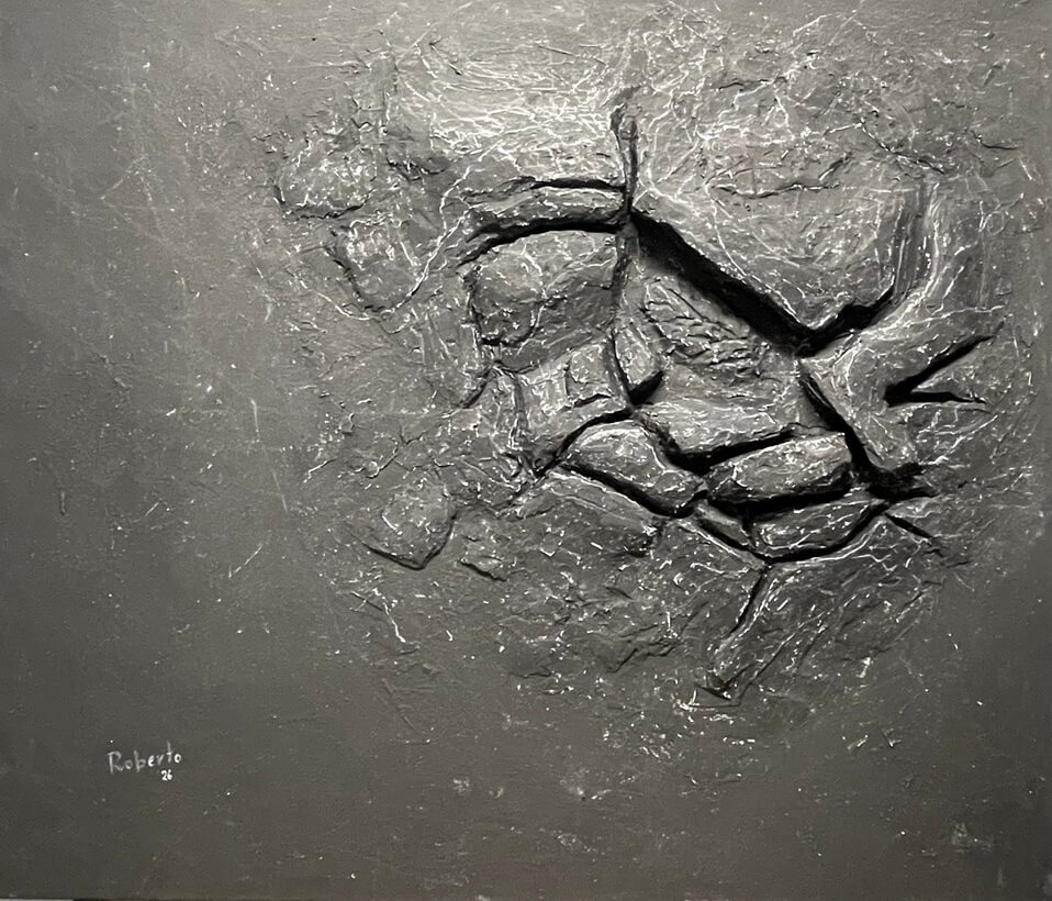 Antrasis serijos "Spaudimas" darbas. Reljefinis kūrinys apie sukauptą spaudimą. Forma fiksuojama akimirkoje prieš galutinį lūžį.